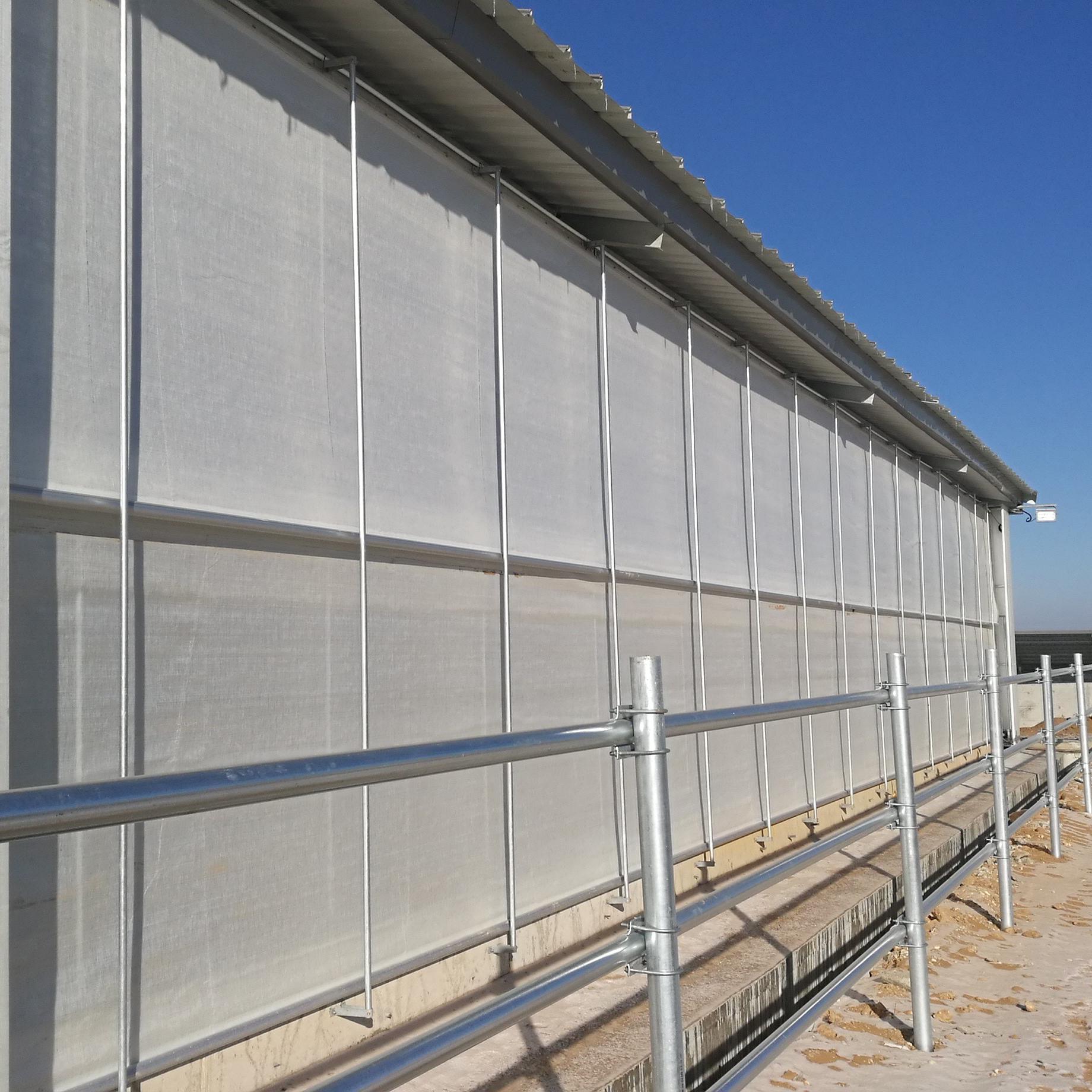 • 牛舍卷簾是一種用于牛舍通風降溫的設備,與牛舍風機一樣,也是為了改善牛只的生存環境和提高其生產效益而設計的。牛舍卷簾通常由布簾、滾筒和操作系統組成,通過手動或電動操作,可以將布簾向上或向下卷起或放下,調節牛舍內部的通風和光線透過程度。